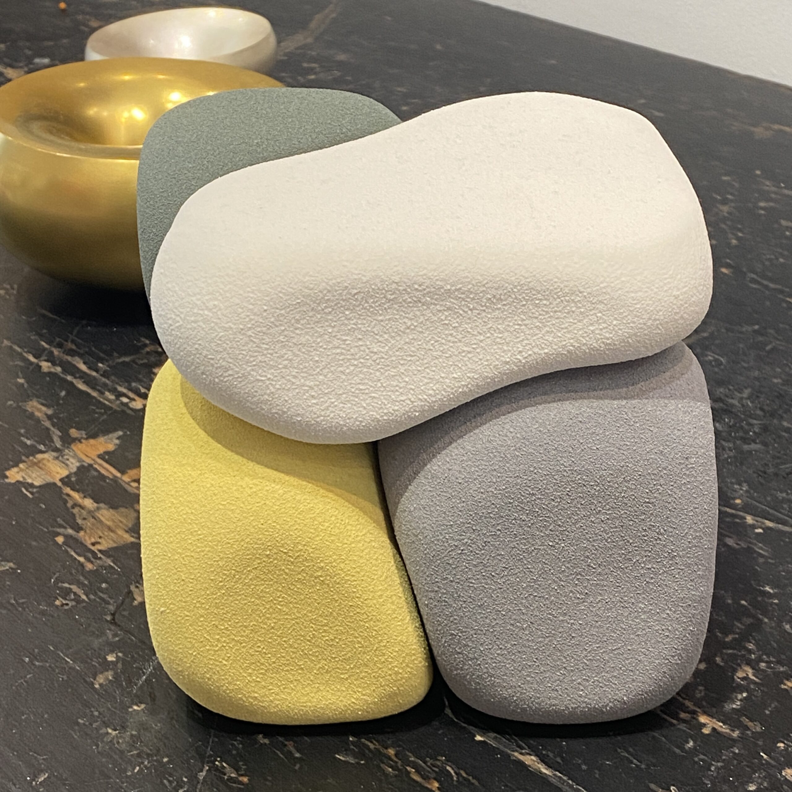Her pieces aspire to push the limits of material practice by leveraging techniques originating from 3D modelling and its associated aesthetics, translating these digital methodologies into the realm of sculptural handcrafted pieces, mould making and slip casting techniques.